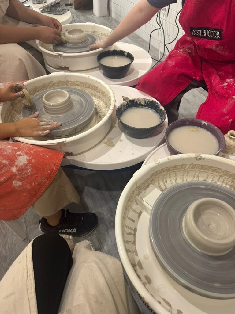 Fast forward a few days later where I had also signed up for a solo pottery class. During it, I was impressed by the instructor and her ability to manipulate the clay, and then my own ability to follow along without prior experience. I noticed again the presence it demanded of me.