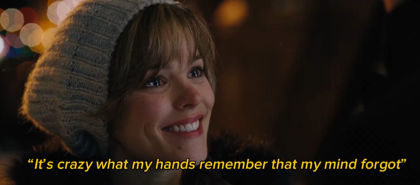 This scene from The Vow popped into my head while I was on the pottery wheel. It reminded me (again) how the body knows things — it remembers what the mind forgets (or just wants to ignore) and if we let our hands guide us, they will show us something new, something we didn’t realize we could do, or something that was always within us.
